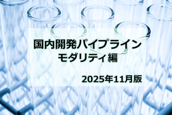 主要製薬企業の国内の新薬開発パイプラインを、2025年11月19日時点で各社が公表している情報をもとに企業別・創薬モダリティ別にまとめました。(昨年11月時点の「[定点観測]主要製薬企業 国内新薬開発パイプライン|モダリティ編」はこちら)